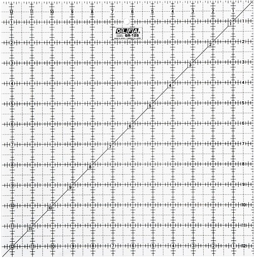 12.5' x 12.5' is the popular ruler used for all quilting and crafting projects. Great for squaring pieced blocks, cutting larger pieces, and works well as a template for pillow tops and simple square patchwork designs.