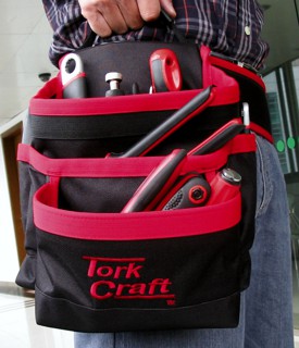 The tool pouch is used when a toolbox is not easily accessible. Tools that are often used are easily stored in the tool pouch's pockets when working on a ladder or working at heights.
